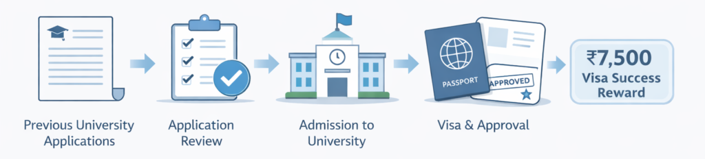 If you complete your private university admission and visa process through Switch Abroad, you may receive a ₹7,500 goodwill reward after your visa is approved.